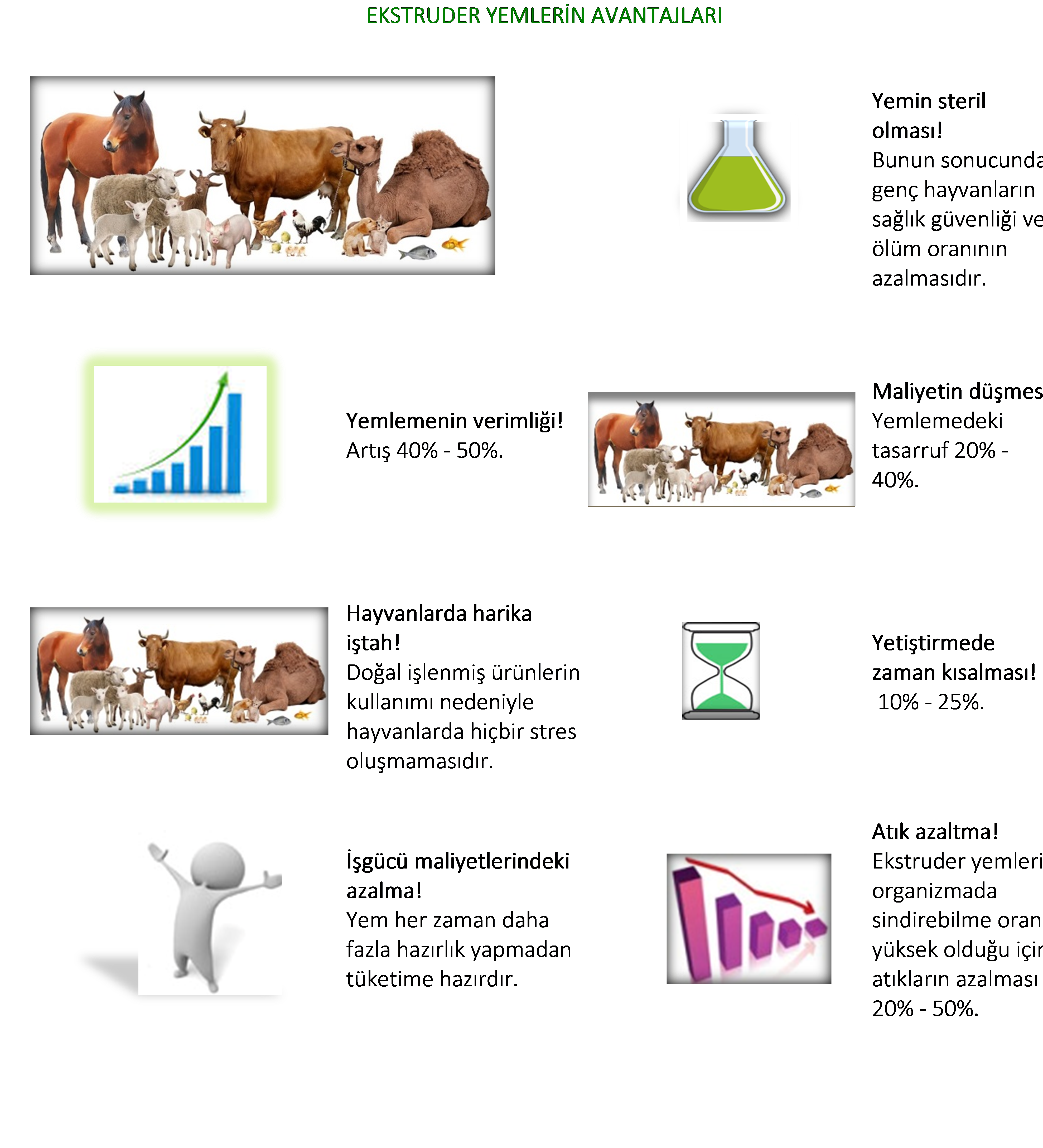 Kullanımı: Ekstruder yemler tüm hayvanlar için tavsiye edilen yüksek kaliteli yem ürünüdür.