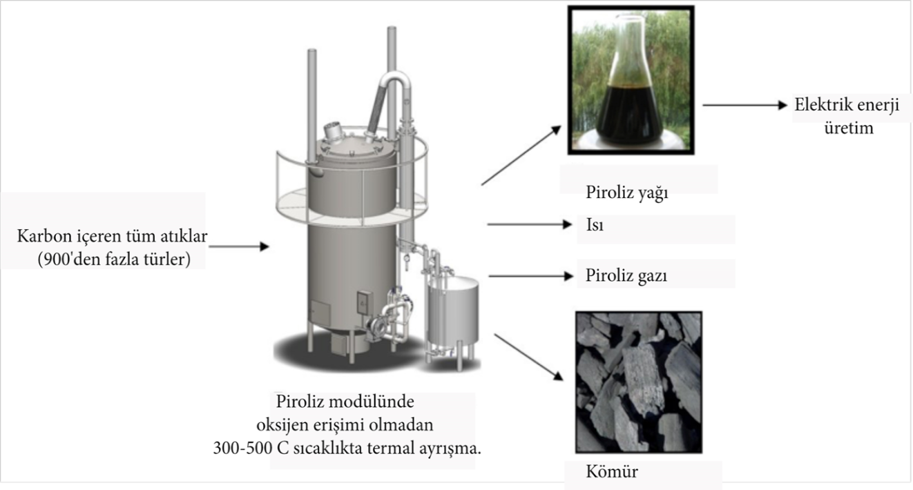 Piroliz işlemi, atık maddeleri oksijensiz ortamda ayrışma işlemidir. Bu işlem sonucu açığa gaz, yağ ve karbon çıkar. Piroliz sistemi bir geri dönüşüm sistemidir. Dünyada halihazırda kullanılan fakat Türkiye'de henüz tam anlamı ile gelişememiş bir sistemdir.